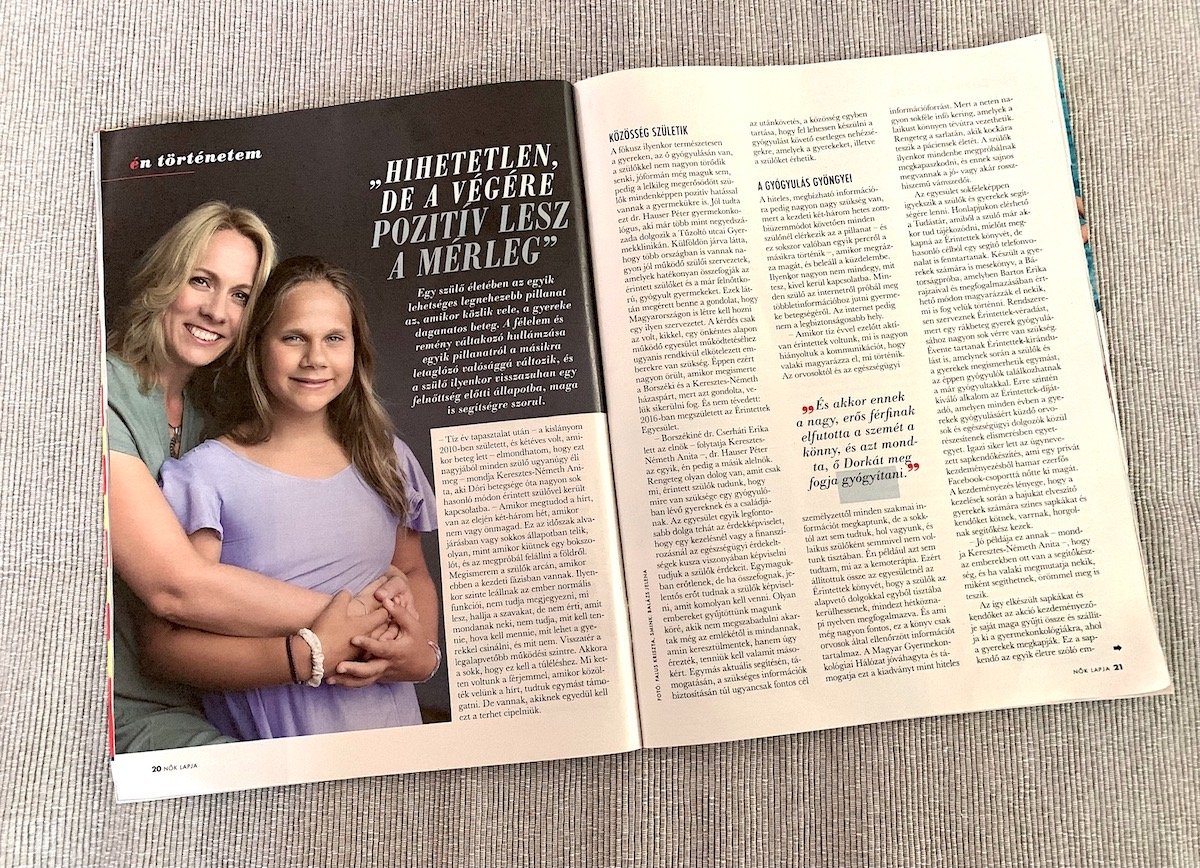 A Nők Lapja 2022/32. számában jelent meg egy nagyon kedves és informatív interjú, amelyet Krúdy Tamás újságíró készített Keresztes-Németh Anitával, aki elmesélte az ő történetüket kislányával Dorkával, és a cikkből sokat megtudhatunk az Egyesület által végzett munkáról is.