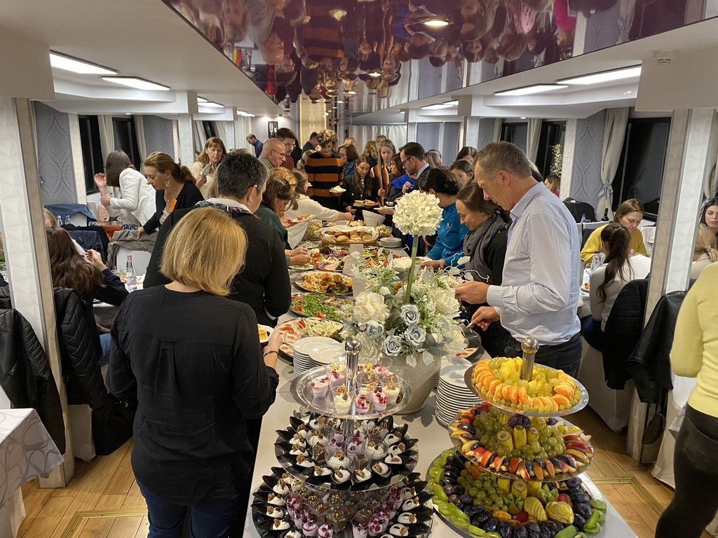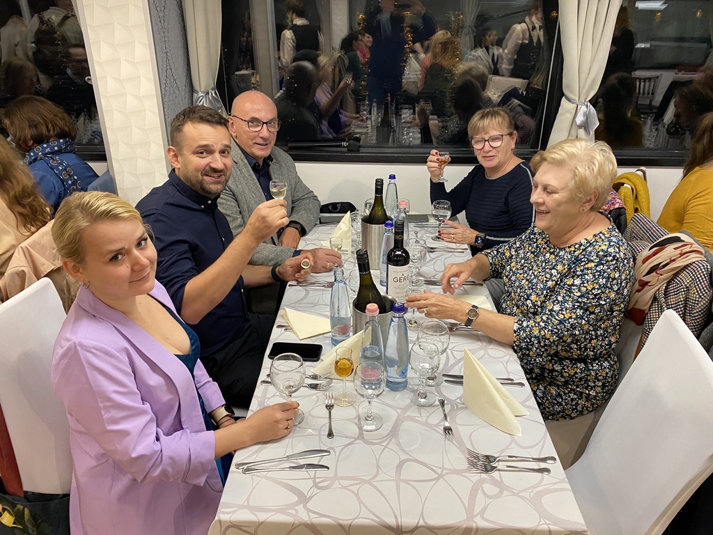 A közel 150 fős társaság csütörtökön egy csodálatos estet töltött el dunai hajózással egybekötött vacsorával.