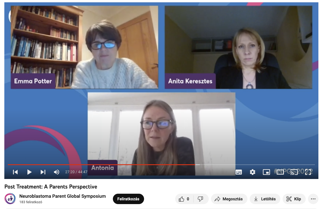 Harmadik alkalommal rendezték meg az Egyesült Királyságból az Neuroblastomában érintettek nemzetközi konferenciáját, ahol az érdeklődők egész nap előadásokat hallgathattak a betegség gyógyításának legfontosabb információiról, újdonságokról, a kezelések fejlődéséről. A program utolsó részében idén először szülői fórumot is tartottak, ahol az Érintettek Egyesület alelnöke, Keresztes-Németh Anita képviselte a magyar, neuroblastomában érintett családokat.