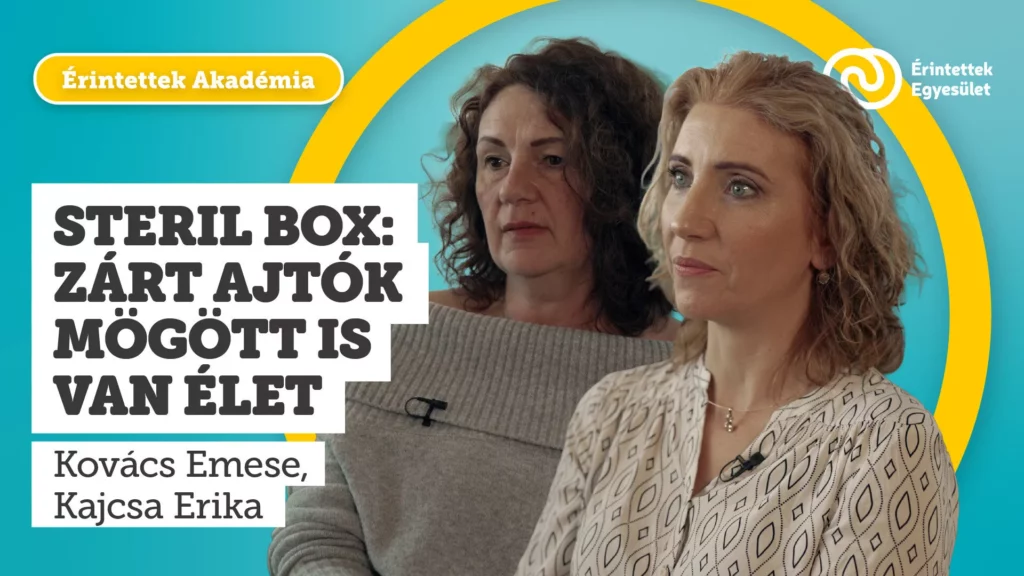 Az Érintettek Akadémia új epizódjában Kovács Emese és Kajcsa Erika diplomás ápolók, több évtizedes tapasztalattal, segítenek megérteni, hogyan működik a steril box a mindennapokban. Elmagyarázzák, mi történik a beköltözéskor, miért válik rutinná a steril fürdés és az öltözés, mit lehet bevinni a boxba, és hogyan telnek a napok ebben a zárt, mégis élhető térben.
