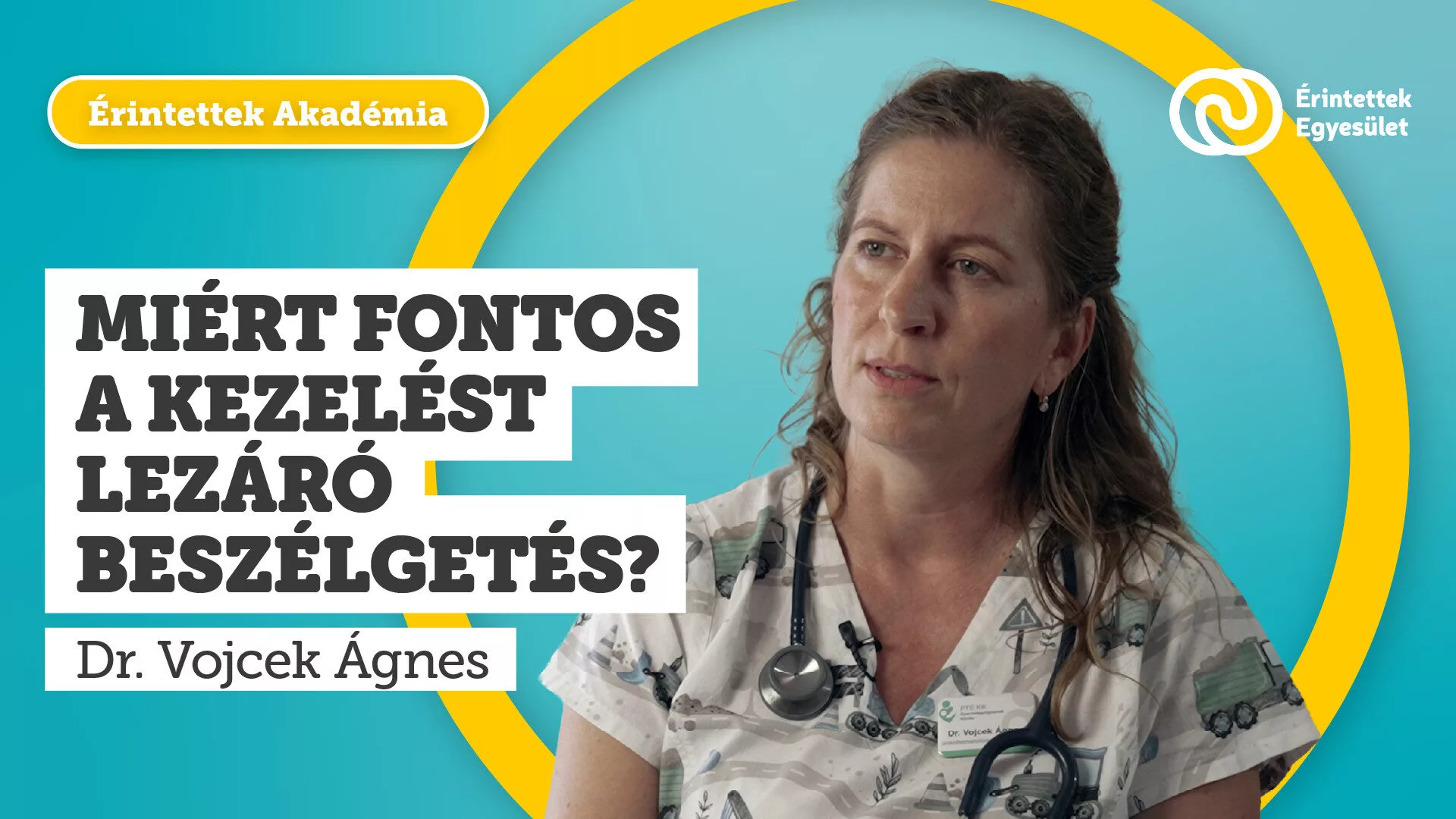 Az Érintettek Akadémia új epizódjában Dr. Vojcek Ágnes, gyermek-onkohematológus segít eligazodni ebben az átmeneti időszakban. A beszélgetés középpontjában a lezáró beszélgetés áll: egy nyugodt, 60–90 perces találkozó, ahol a teljes szakmai csapat – orvos, nővér, pszichológus, kórházpedagógus – együtt tekint vissza a kezelésekre, és közösen megtervezi a következő éveket.